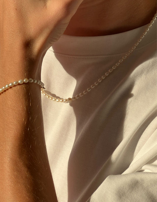 Dive into the Azure of Monaco. This colourful bracelet showcases the perfect harmony of Freshwater Pearls and Blue Agate, a vibrant natural gemstone that reminds us of the sun-kissed skies and ocean of Monaco.